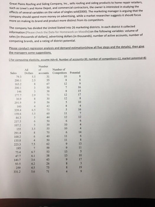 The owner is interested in studying the effects of several variables on the value of shingles sold 000.
